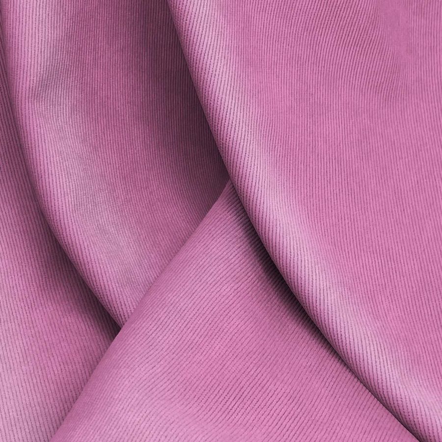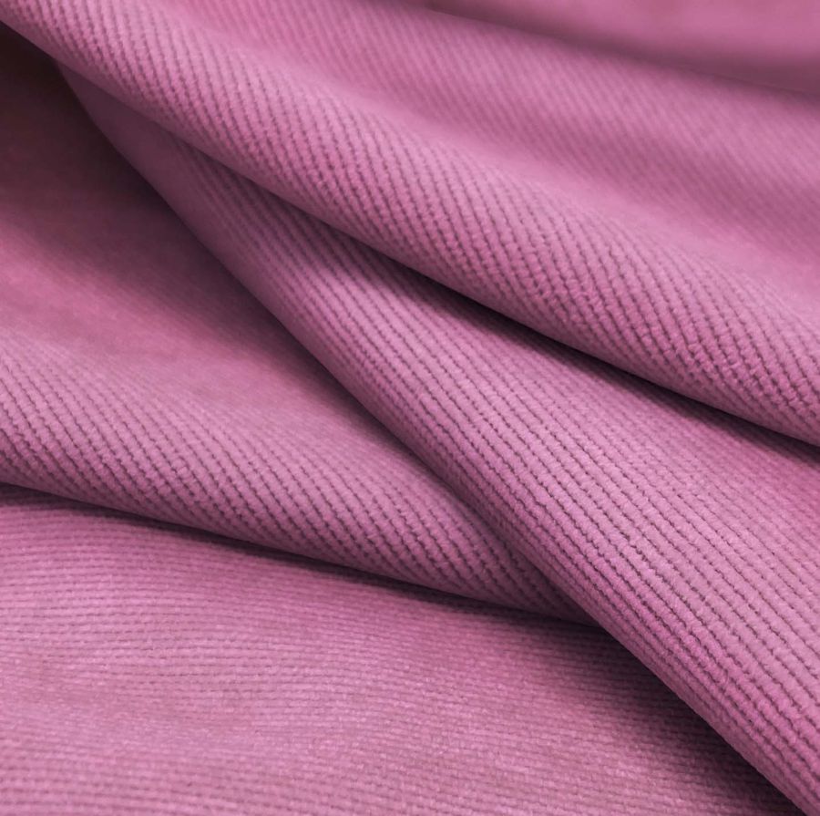 La tela base de este tejido es la pana aterciopelada Dublin, compuesta principalmente por un 85% de poliéster, un 12% de poliamida y un 3% de elastano. El gramaje es de 280 gr/m2 y su ancho es de 150 cm. El color liso impreso en esta tela es el rosa Cadillac, caracterizado por tener una base de tinta cian del 20%, tinta magenta del 67%, tinta amarilla del 11% y tinta negra del 0%, con un valor de CMYK de 20 67 11 0. Este color es un rosa oscuro, con una tonalidad sofisticada y elegante que puede combinar muy bien con otros tonos pastel o más neutros como el beige o el gris.