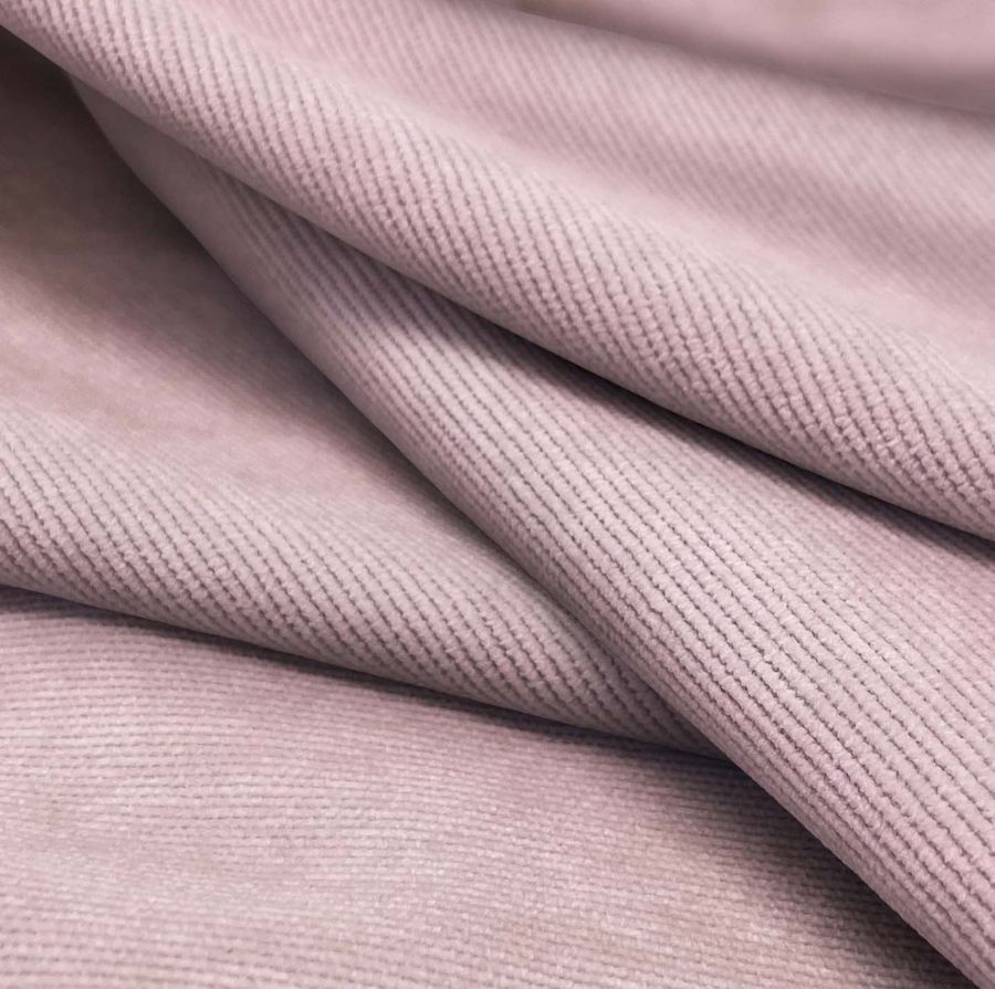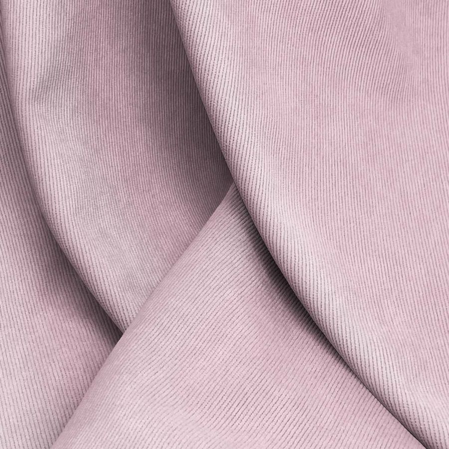 La tela base de este tejido es la Pana Aterciopelada - Dublin, con una composición de 85% POLIÉSTER, 12% POLIAMIDA, 3% ELASTANO. El color liso impreso es una tonalidad de rosa rosada, con un CMYK de 10 35 13 0, que se combina muy bien con tonos blancos, grises y negros. Es importante destacar que la tela está impresa con el color liso a una sola cara por impresión digital textil, lo que significa que no es un tejido tintado, sino impreso por una sola cara.