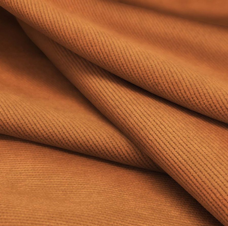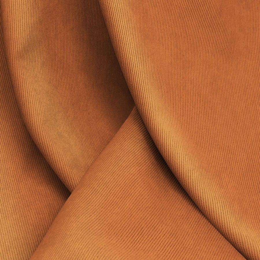 La Pana Aterciopelada - Dublin es una tela de pana compuesta en un 85% de poliéster, 12% de poliamida y un 3% de elastano. Su gramaje es de 280 gr/m2 y su ancho es de 150 cm. El color liso impreso del tejido es marrón siena, con un CMYK de 21 67 82 10. Este color tiene un toque terroso y natural, similar a la fruta madura, que nos evoca la tierra fértil, la estabilidad y el equilibrio. Combina en particular con tonos verdes y azules.