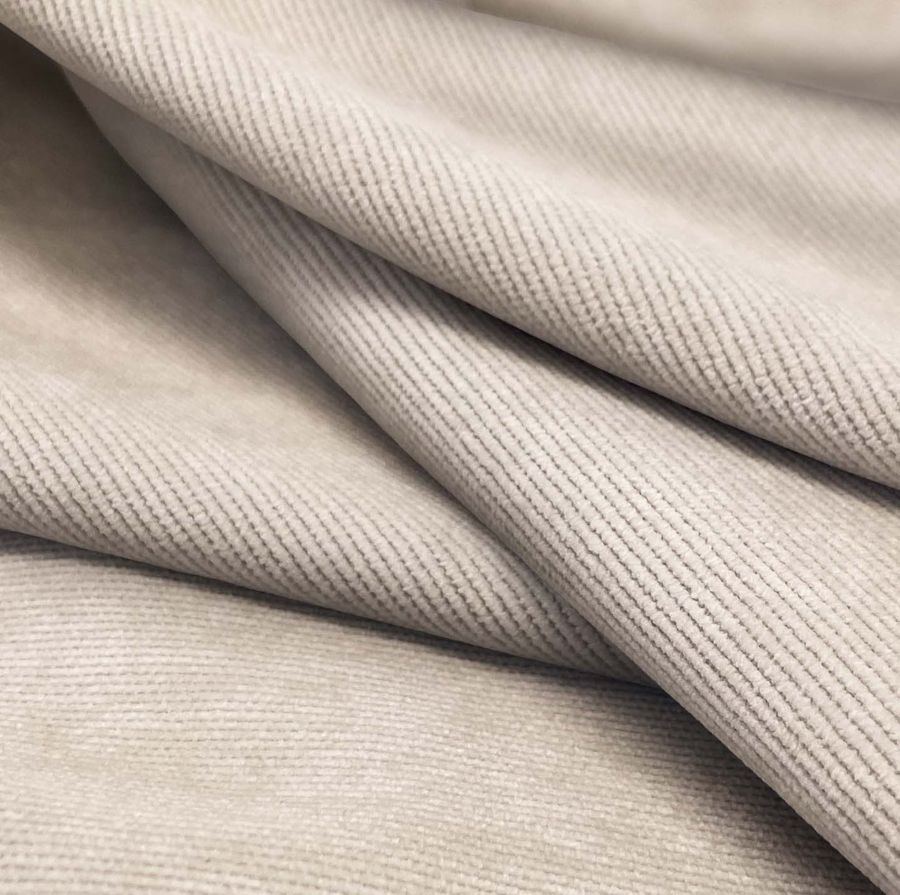 La tela base de este tejido es la Pana Aterciopelada - Dublin, compuesta por un 85% de poliéster, un 12% de poliamida y un 3% de elastano, con un gramaje de 280 gr/m2 y un ancho de 150 cm. El color liso impreso es Crudo/Blanco antiguo, con una tinta cyan de 5, una tinta magenta de 15, una tinta yellow de 18 y una tinta black de 0, lo que arroja un valor CMYK de 5, 15, 18, 0. Es un color suave y elegante, con un brillo visual muy sutil. Además, combina perfectamente con tonalidades más oscuras de marrón y negro, así como con tonos pastel como el rosa o el celeste. Cabe destacar que este tejido está impreso con el color liso a una sola cara por impresión digital textil, lo que le confiere una textura y un acabado muy suaves y delicados.