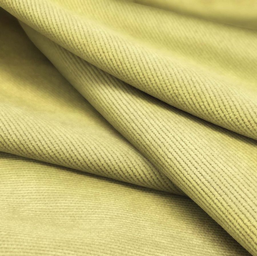 La tela está impresa con el color liso a una sola cara por impresión digital textil, lo que significa que la tinta se imprime en la superficie de la tela sin penetrar en el tejido. Las características generales de la tela base son una textura suave y un visual brillante. Estas características hacen que la pana aterciopelada sea una opción ideal para la decoración y la tapicería, así como para la moda, como pantalones, chaquetas, blazers y accesorios, como bolsos o mochilas.