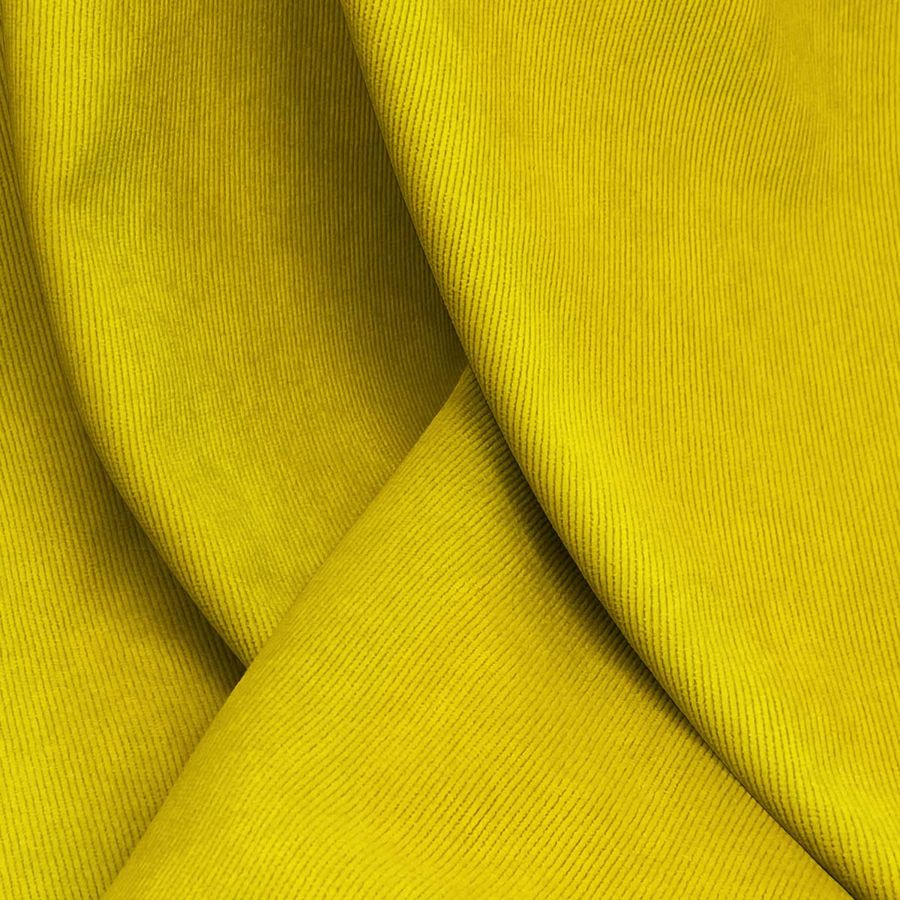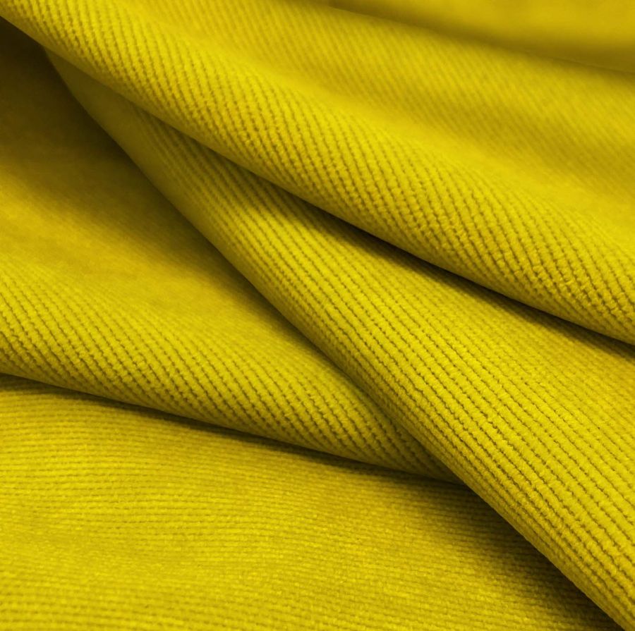 La tela base de este tejido es la Pana Aterciopelada - Dublin, compuesta por un 85% de poliéster, un 12% de poliamida y un 3% de elastano con un gramaje de 280 gr/m2 y un ancho de 150 cm. Su color liso impreso es un amarillo oro brillante con una mezcla de tinta cyan, magenta, yellow y black en un CMYK de 15 25 97 3. Este color secundario es vibrante y alegre, y combina perfectamente con tonos neutros como el blanco y el gris para un efecto elegante, y con colores más vivos como el rosa y el morado para un look más atrevido e impactante.