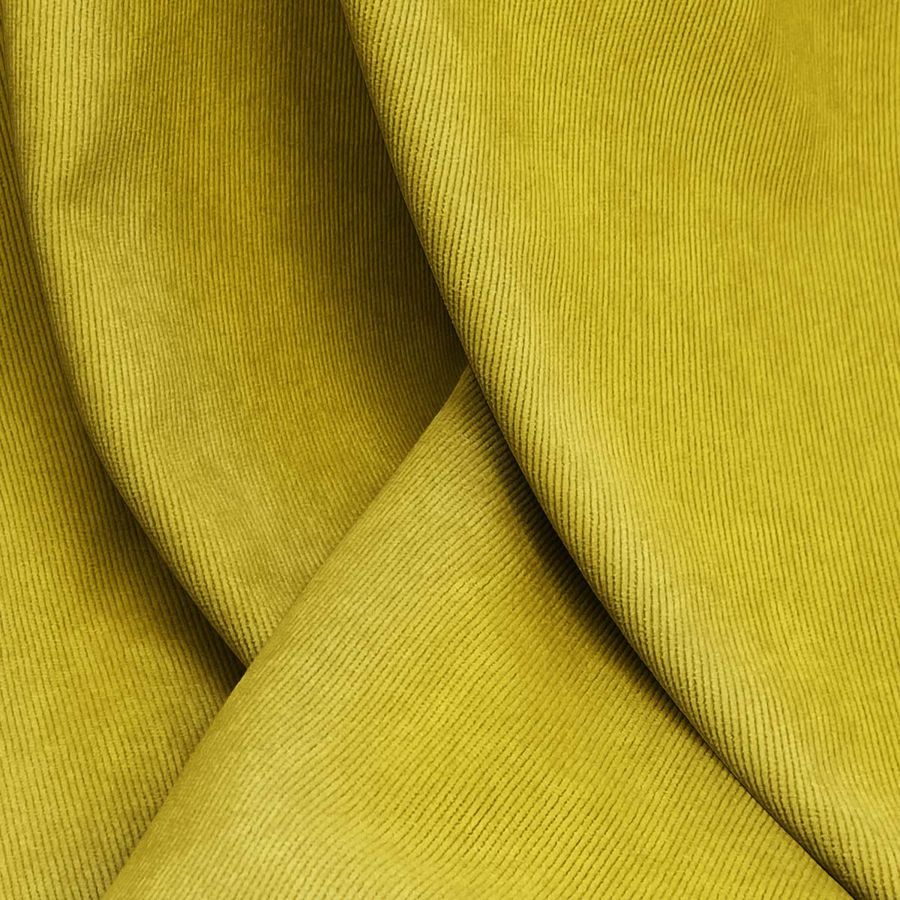 La tela base es la Pana Aterciopelada - Dublin, compuesta principalmente de poliéster y poliamida con un poco de elastano, lo que garantiza una excelente elasticidad. El color liso impreso en ella es Amarillo Olivo, con un CMYK de 26 30 98 10, especialmente brillante y llamativo, muy adecuado para diferentes aplicaciones tanto en moda como en decoración. El color secundario se inspira en la naturaleza, y combina especialmente bien con otros tonos de verde, marrones y tierras, y tonos básicos como el blanco y el negro. Es importante destacar que la tela se imprime a una sola cara, utilizando tecnología de impresión digital textil de alta calidad, lo que garantiza una calidad y nitidez excepcionales.
