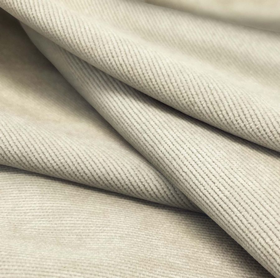 La tela base es Pana Aterciopelada - Dublin, compuesta por 85% de poliéster, 12% de poliamida y 3% de elastano, con un peso de 280 gr/m2 y un ancho de 150 cm. Está impresa con un color liso en tonalidades de crudo y marfil suave, compuesto por 4% de tinta cyan, 6% de tinta magenta, 23% de tinta yellow y 0% de tinta black, lo que resulta en un CMYK de 4 6 23 0. Este color da un aspecto suave, cálido y natural, y combina especialmente bien con otros tonos tierra o neutros.