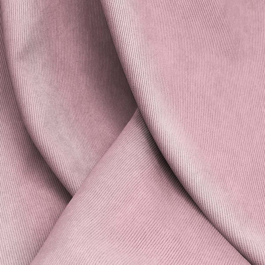 La tela base de este tejido es la Pana Aterciopelada - Dublin, un tipo de pana compuesta por un 85% de poliéster, un 12% de poliamida y un 3% de elastano, con un gramaje de 280 gr/m2 y un ancho de 150 cm. El color liso impreso es una mezcla de tonos rosa y rosa marrón, que en el CMYK se reflejan con los valores 13 43 20 1. Este color evoca la delicadeza y el romanticismo, con toques cálidos que lo hacen ideal para decoración y moda.