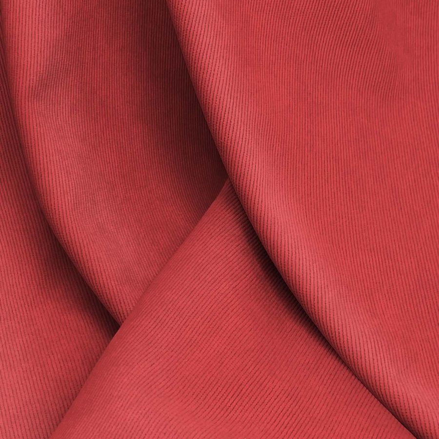 La tela base de este tejido es la Pana Aterciopelada - Dublin, compuesta por 85% de poliéster, 12% de poliamida y 3% de elastano, con un gramaje de 280 gr/m2 y un ancho de 150 cm. El color liso impreso es un hermoso rojo vino tinto, con un CMYK de 19 87 72 9, que se combina bien con tonos marrones y grises.