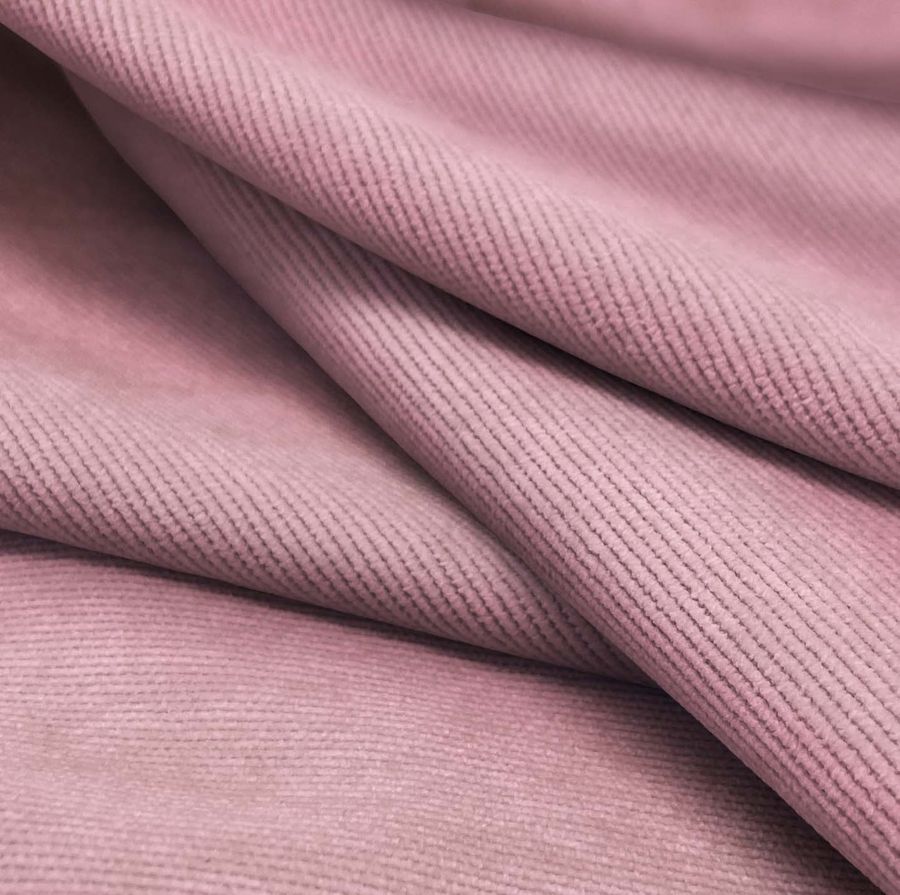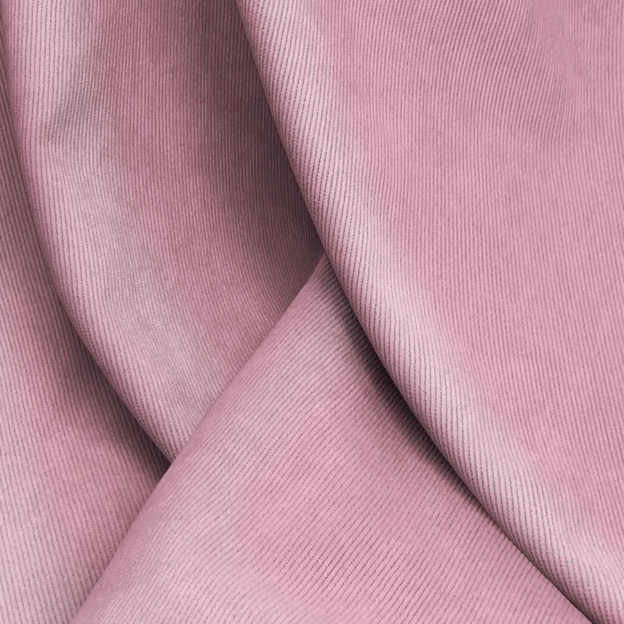 La tela base, Pana Aterciopelada - Dublin, está compuesta por 85% de poliéster, 12% de poliamida y 3% de elastano, con un gramaje de 280 gr/m2 y ancho de 150 cm. El color liso impreso tiene un CMYK de 15 51 20 1, lo que resulta en un tono rosa púrpura con matices de pintalabios rosa. Este color combina particularmente bien con tonos neutros y grises.