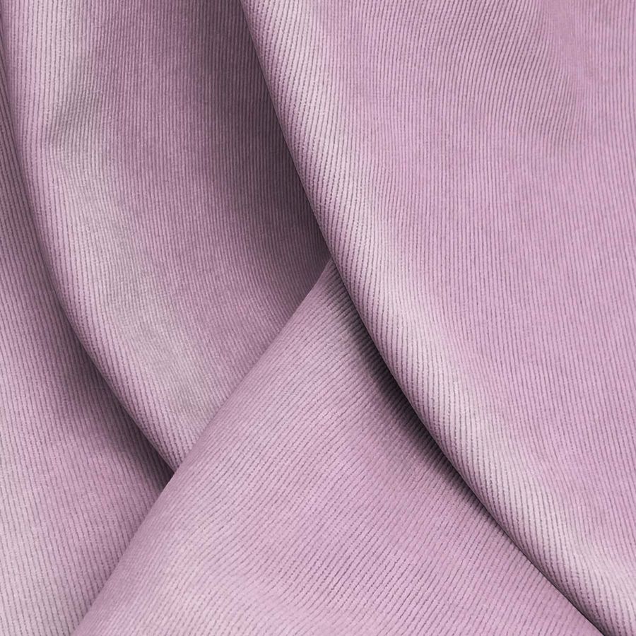 La tela base de la Pana Aterciopelada - Dublin está compuesta principalmente por poliéster (85%), poliamida (12%) y elastano (3%), con un gramaje de 280 gr/m2 y un ancho de 150 cm. Su color rosa-malva profundo, con un CMYK de 22 46 11 0, es suave al tacto y presenta un acabado brillante. Este color combina especialmente bien con tonos beige y dorados.