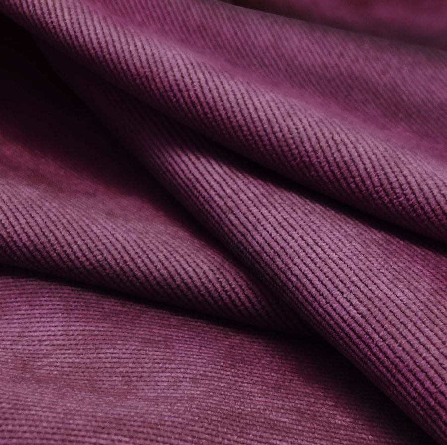 La tela base de este tejido es una Pana Aterciopelada - Dublin compuesta por 85% poliéster, 12% poliamida y 3% elastano, con un gramaje de 280 gr/m2 y un ancho de 150 cm. El color liso impreso es Morado Berenjena con un CMYK de 60 93 36 45, impreso a una sola cara por impresión digital textil. Esta tonalidad evoca el misterio y la profundidad de la noche, aportando tranquilidad y sofisticación a la pieza confeccionada. El color combina especialmente bien con tonos claros como el beige, el crudo, el lila y el turquesa, creando una estética armoniosa y elegante.