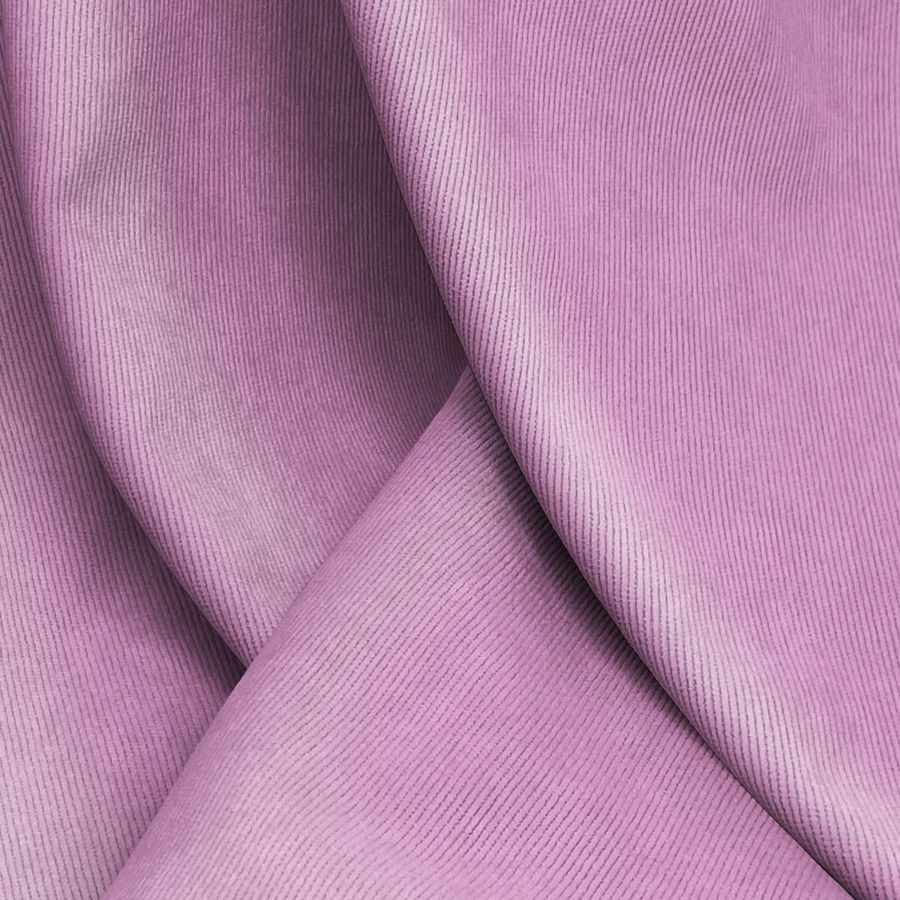 La tela base de esta descripción es la Pana Aterciopelada - Dublin, compuesta en un 85% de poliéster, un 12% de poliamida y un 3% de elastano, con un gramaje de 280 gr/m2 y un ancho de 150 cm. El color liso impreso es una combinación de rosa y ciruela rosa, con un CMYK de 23 57 5 0. Este color suave y brillante combina especialmente bien con tonos beige, grises y marrones.
