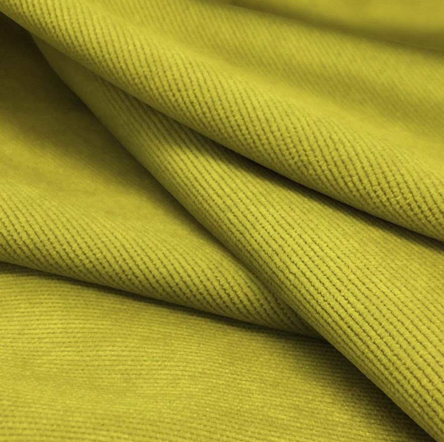 La Pana Aterciopelada - Dublin tiene una textura suave tanto en el tacto como en la vista, y un brillo visual que le da un aspecto elegante. El verde latón es un color vibrante y brillante que resalta la belleza de la tela base.
