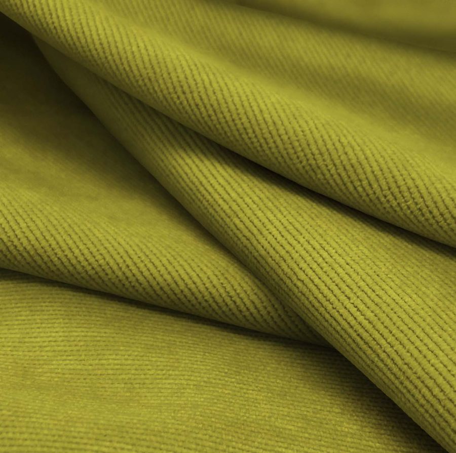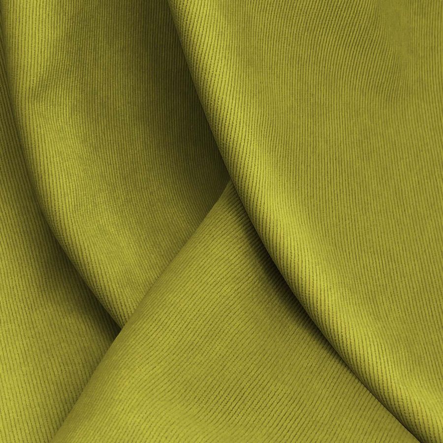 La tela base de esta descripción es la Pana Aterciopelada - Dublin, compuesta por 85% de poliéster, 12% de poliamida y 3% de elastano, con un gramaje de 280 gr/m2 y un ancho de 150 cm. El color impreso es un verde olivo con un CMYK de 45 35 93 21, que destaca por su textura suave y su visual brillante. Combina bien con tonos terrosos, beige y grisáceos. Es importante destacar que la tela está impresa con el color liso a una sola cara por impresión digital textil.