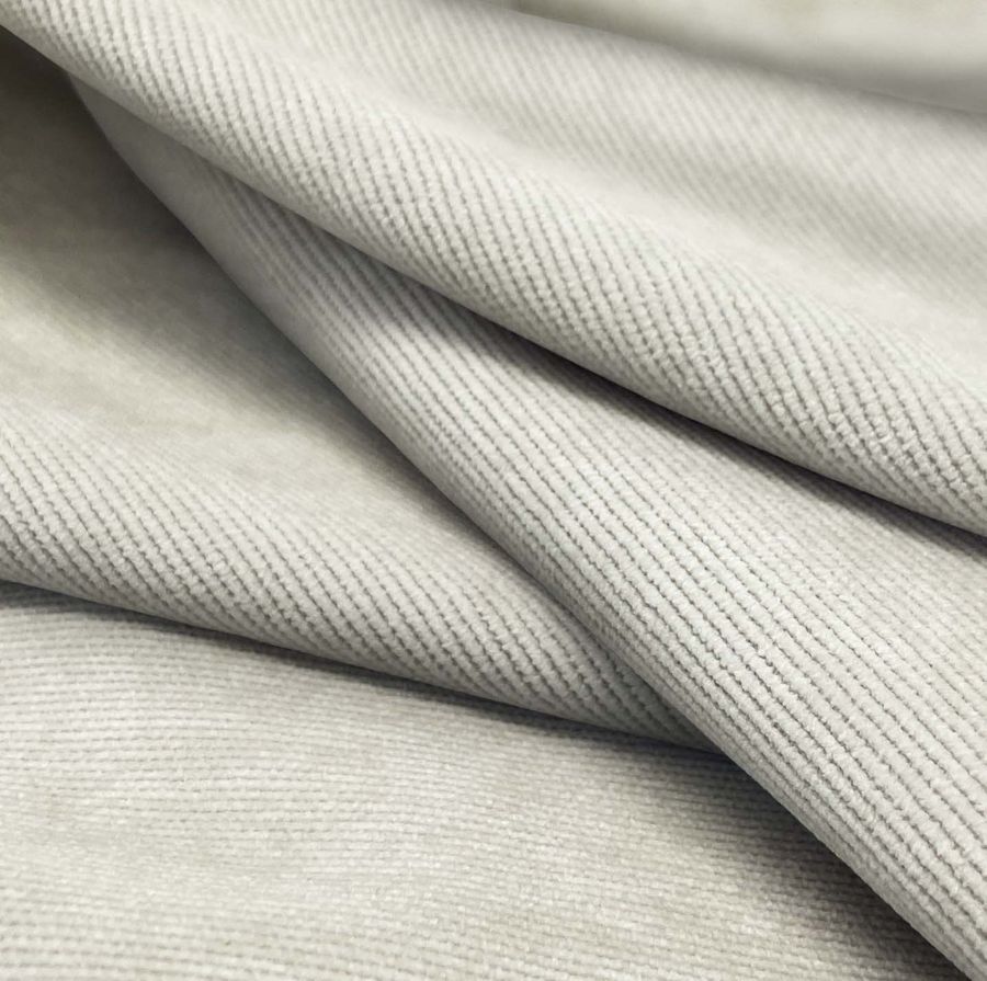 La tela base de este tejido es la Pana Aterciopelada - Dublin, compuesta en un 85% de poliéster, un 12% de poliamida y un 3% de elastano, con un gramaje de 280 gr/m2 y un ancho de 150 cm. El color liso impreso es de un blanco blanquecino con una combinación de tintas de CMYK 8 5 15 0. Este color secundario es suave y brillante al mismo tiempo, con una textura visual muy atractiva que combina perfectamente con tonos tierra y beige.