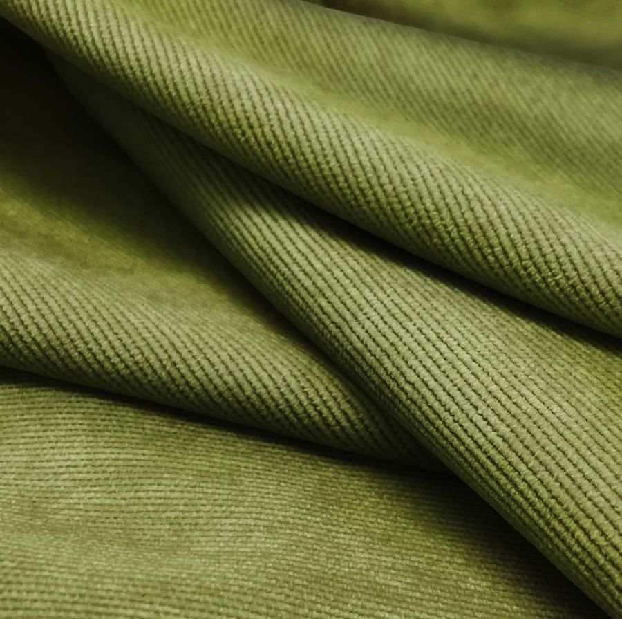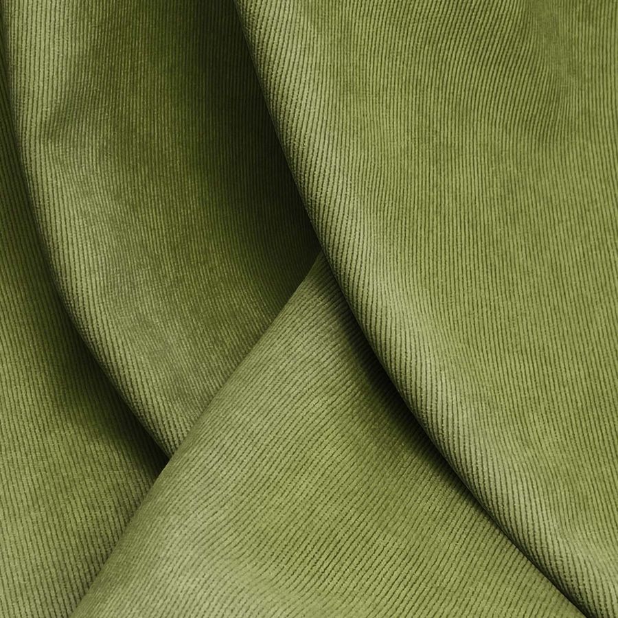 La tela base es la Pana Aterciopelada - Dublin, compuesta por 85% de poliéster, 12% de poliamida y 3% de elastano. Su gramaje es de 280 gr/m2, con un ancho de 150 cm. El color liso impreso es un verde helecho (CMYK: 58 38 89 29), con una textura suave y un brillo visual. Combina bien con tonos tierra y marrones, creando armonía en su diseño. Este tejido está impreso con el color liso a una sola cara por impresión digital textil, y no es un tejido tintado, sino impreso por una sola cara.