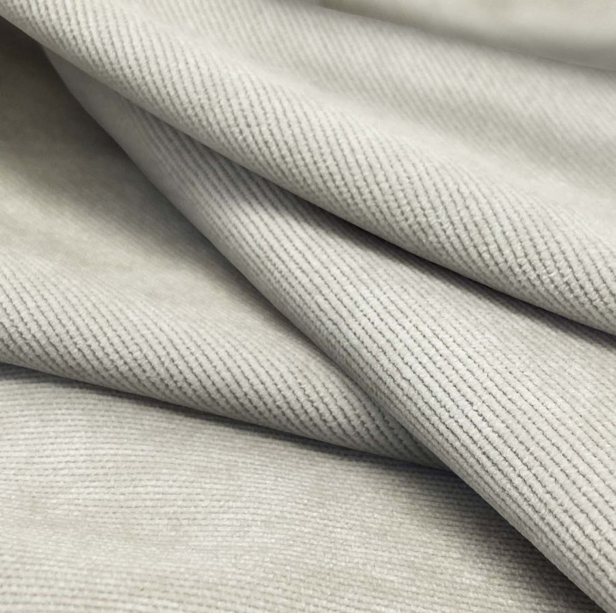 La tela base de este tejido es la Pana Aterciopelada - Dublin, compuesta por un 85% de poliéster, un 12% de poliamida y un 3% de elastano, con un gramaje de 280 gr/m2 y un ancho de 150 cm. El color liso impreso sobre esta tela es crudo con matices de chocolate blanco, indicados por un CMYK de 14 9 18 0. El color tiene una textura visual brillante y un tacto suave que evoca la estética acogedora de la pana. El chocolate blanco se funde de forma sutil con el crudo para crear un tono cálido y natural, que combina especialmente bien con colores tierra, marrones cálidos y tonos pastel.
