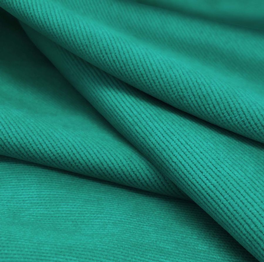 La pana aterciopelada - Dublin impresa en un color liso verde menta oscura tiene un CMYK de 81 24 56 7. Este color secundario se caracteriza por evocar un ambiente relajante y fresco, y se combina perfectamente con tonos claros, como el blanco, el beige y el gris, así como con tonos más fuertes, como el rosa palo o el marrón oscuro. Es importante destacar que la tela base está impresa con el color liso a una sola cara por impresión digital textil, por lo que su textura y suavidad se mantienen en la otra cara del tejido.