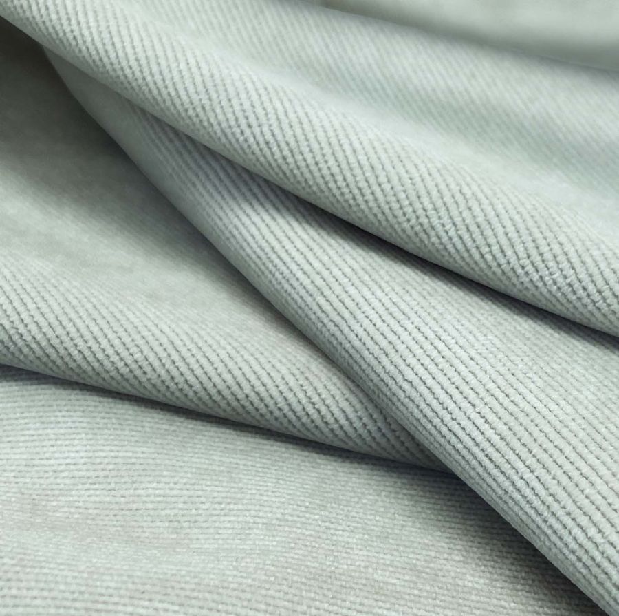 La tela base es una Pana Aterciopelada, con una composición de 85% POLIÉSTER, 12% POLIAMIDA, y 3% ELASTANO. Su gramaje es de 280 gr/m2 y tiene un ancho de 150 cm. El color liso impreso es un Verde Azuloso, que se consigue con una combinación de tintas CMYK de 26 4 17 0. Este color tiene una textura visual brillante que le da un toque de sofisticación y elegancia. Además, el Verde Azuloso combina perfectamente con colores grisáceos o pálidos como el blanco, el crema y el beige.