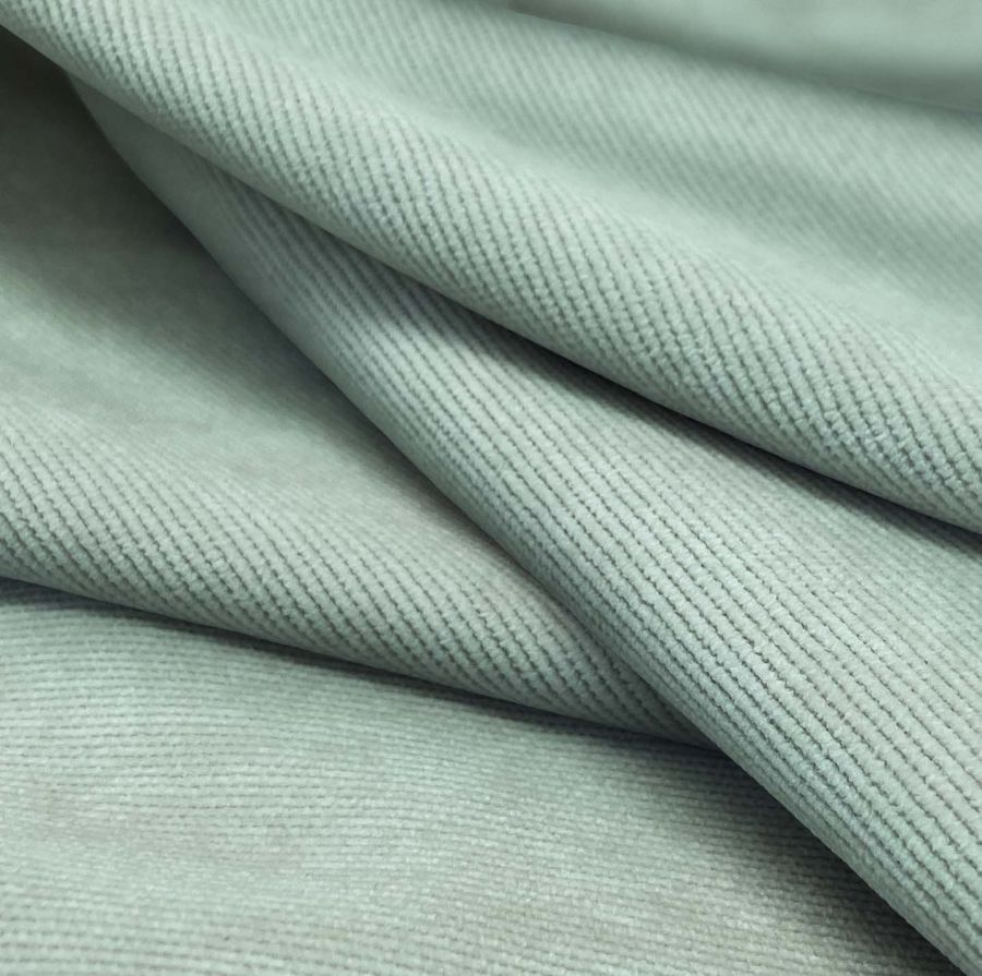 La tela base es la Pana Aterciopelada - Dublin, una pana de composición 85% poliéster, 12% poliamida y 3% elastano, con un gramaje de 280 gr/m2 y un ancho de 150 cm. El color liso impreso es Verde Mar Opaco, con un CMYK de 39 10 28 0. Este color transmite serenidad y frescura, evocando el mar y la naturaleza. Combina especialmente bien con tonos tierra y beige. Es importante destacar que la tela está impresa con el color liso a una sola cara por impresión digital textil, lo que permite conseguir un resultado nítido y definido.