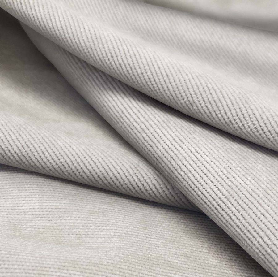 La tela base es la Pana Aterciopelada - Dublin, compuesta por 85% POLIÉSTER, 12% POLIAMIDA y 3% ELASTANO, con un gramaje de 280 gr/m2 y un ancho de 150 cm. Su color liso impreso es el Gris Ganso, con un CMYK de 15 13 14 0. Este color representa la elegancia, sofisticación y serenidad. Es un tono muy versátil que combina muy bien con otros colores, especialmente con tonos pastel y neutros como el beige y el blanco.