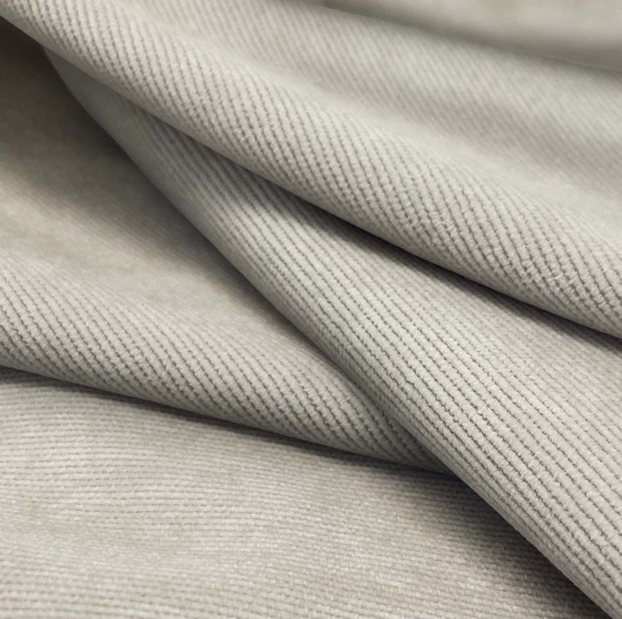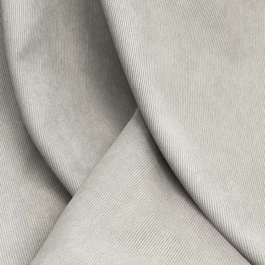 La Pana Aterciopelada - Dublin es una tela de pana compuesta por 85% poliéster, 12% poliamida y 3% elastano, con un gramaje de 280 gr/m2 y un ancho de 150 cm. El color liso impreso es un hermoso gris nube con un CMYK de 23 18 26 2, que le da una sensación suave y brillante al tacto y a la vista. Este color secundario combina maravillosamente con oreos tonos grises, verdes apagados y tonalidades de azul claro. Es importante destacar que la tela está impresa con el color liso a una sola cara por impresión digital textil, lo cual significa que no es un tejido tintado sino impreso por una sola cara.