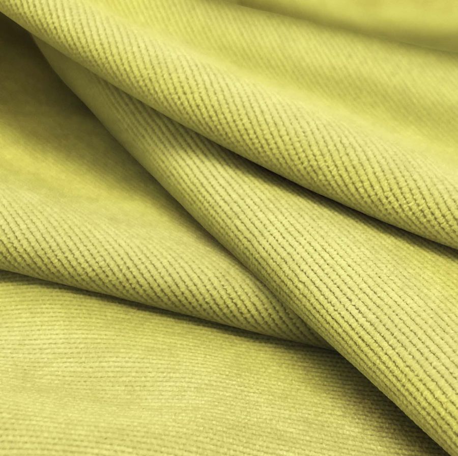 La tela base de este tejido es una pana aterciopelada de nombre Dublin, compuesta en un 85% de poliéster, un 12% de poliamida y un 3% de elastano, con un gramaje de 280 gr/m2 y una anchura de 150 cm. El color impreso es un vibrante Amarillo canario, con un contenido CMYK de 9 0 68 0. Este color secundario es un tono amarillo intenso, que se relaciona con la alegría, la felicidad y la energía, combinando bien con tonos neutros como el negro, el blanco y el gris, así como con tonos terrosos y dorados.