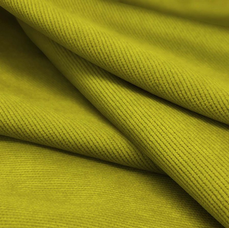 La tela base de este tejido se trata de una Pana Aterciopelada llamada Dublin, compuesta por un 85% de poliéster, un 12% de poliamida y un 3% de elastano, con un gramaje de 280 gr/m2 y un ancho de 150 cm. El color liso impreso sobre este tejido es un verde olivo, cuyo CMYK es de 40 29 100 13, siendo éste brillante y suave al tacto. Este color secundario combina perfectamente con otros tonos de verde, marrones y amarillos.