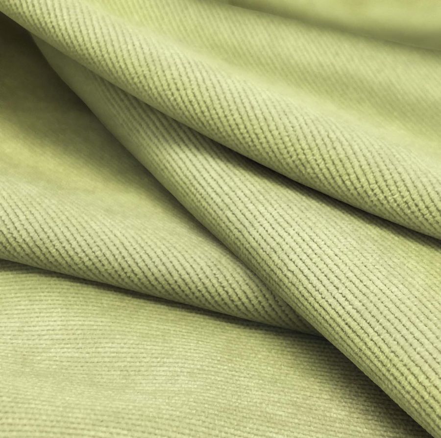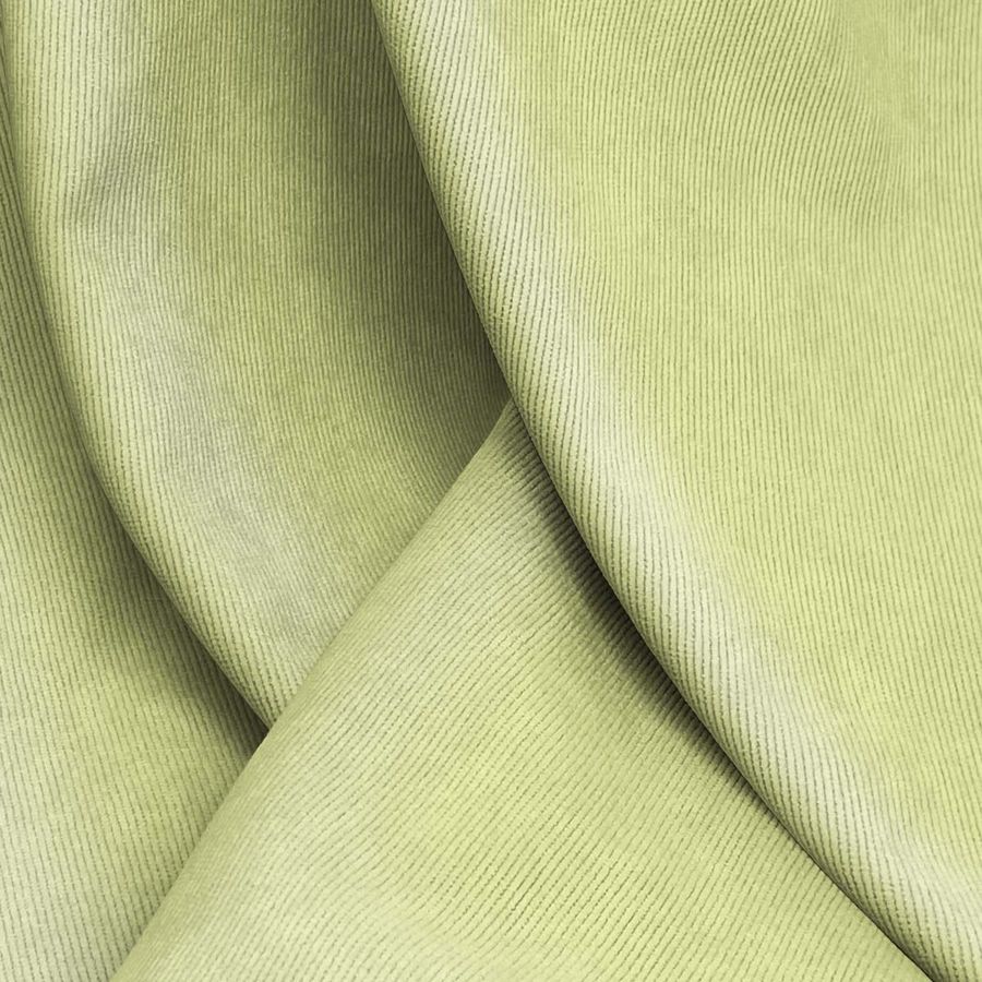 La tela base es la Pana Aterciopelada - Dublin, compuesta por un 85% de poliéster, un 12% de poliamida y un 3% de elastano. Su gramaje es de 280 gr/m2 y tiene un ancho de 150 cm. El color liso impreso es un verde pastel con valores de CMYK de 22 2 57 0, lo que indica una mezcla de cian, magenta y amarillo en diferentes proporciones. Este color se caracteriza por ser suave y brillante, lo que lo hace ideal para decoración y moda. Complementa especialmente bien con colores tierras y neutros, creando ambientes cálidos y acogedores.