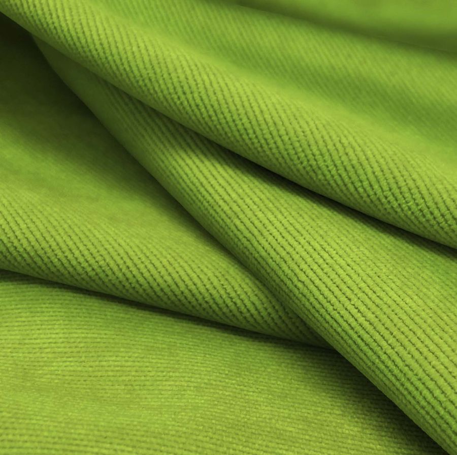La tela base de este tejido es una Pana Aterciopelada - Dublin, compuesta por un 85% de poliéster, un 12% de poliamida y un 3% de elastano, con un gramaje de 280 gr/m2 y un ancho de 150 cm. El color liso impreso es un verde cebolla con una combinación de tintas de CMYK de 58 15 96 2. Este color se asemeja a un tono vegetal, con una sensación de frescor y vitalidad inherentes. Combinado con otros colores, este verde se asocia muy bien con colores neutros como el blanco, el gris o el beige, o incluso con otros tonos más cálidos como el amarillo o el naranja, creando combinaciones audaces y animadas. Este tejido está impreso con el color liso a una sola cara por impresión digital textil, lo que garantiza una alta calidad en la impresión y una excelente reproducción de los detalles.