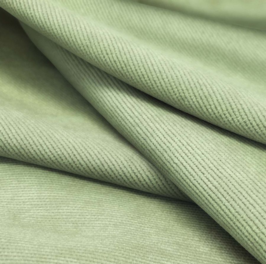 La tela base de este tejido es la Pana Aterciopelada - Dublin, compuesta por 85% de poliéster, 12% de poliamida y 3% de elastano, con un gramaje de 280 gr/m2 y un ancho de 150 cm. El color liso impreso es un verde rana, con un CMYK de 35 5 49 0, impreso a una sola cara por impresión digital textil. Este color es un verde intenso con toques amarillos, simbolizando la armonía y la naturaleza. Este color combina bien con tonos tierrra y naranjas oscuros.
