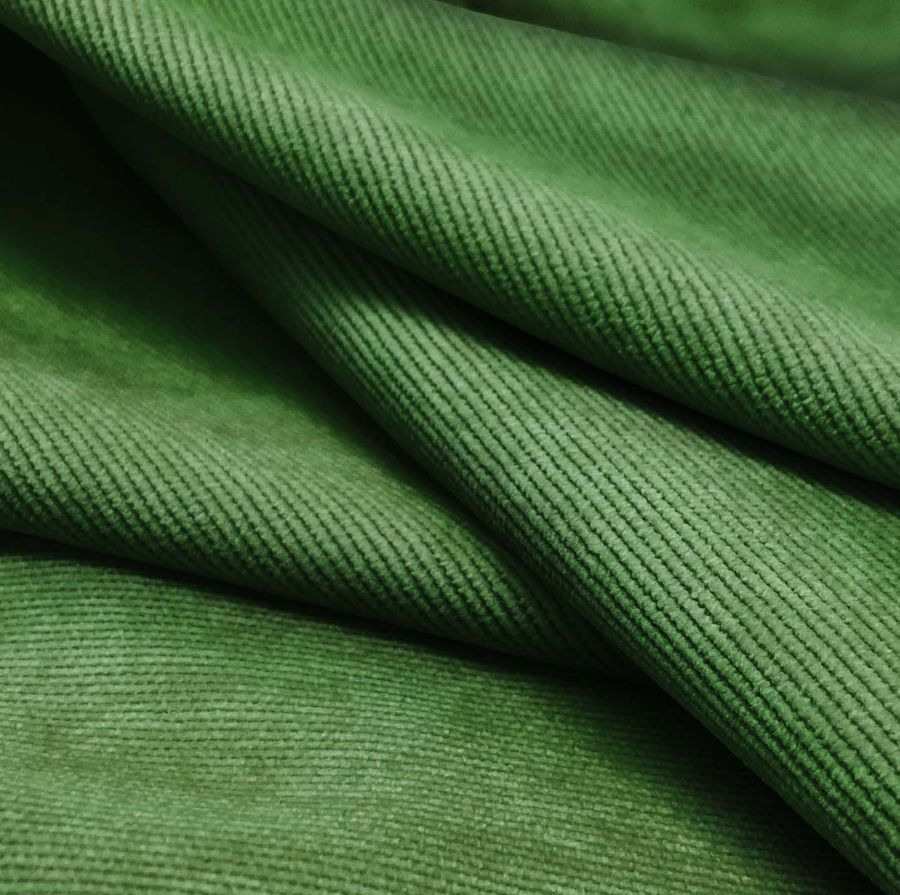 La tela base es Pana Aterciopelada - Dublin, compuesta por 85% POLIÉSTER, 12% POLIAMIDA y 3% ELASTANO. El color liso impreso es verde alga con un CMYK de 78 37 91 31. Un color vibrante y natural que combina a la perfección con tonos teja, marrones y grises, creando así una armonía cromática cálida y elegante. El tejido está impreso con el color liso a una sola cara por impresión digital textil, lo que asegura una alta calidad y durabilidad del estampado.