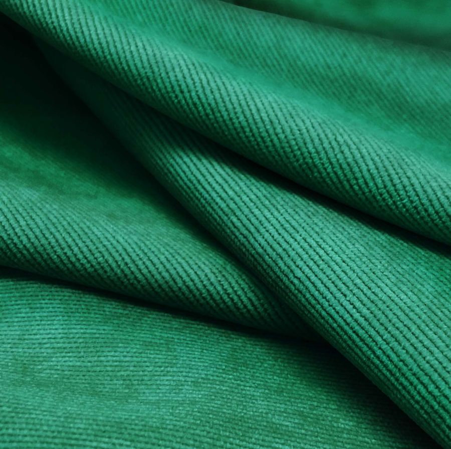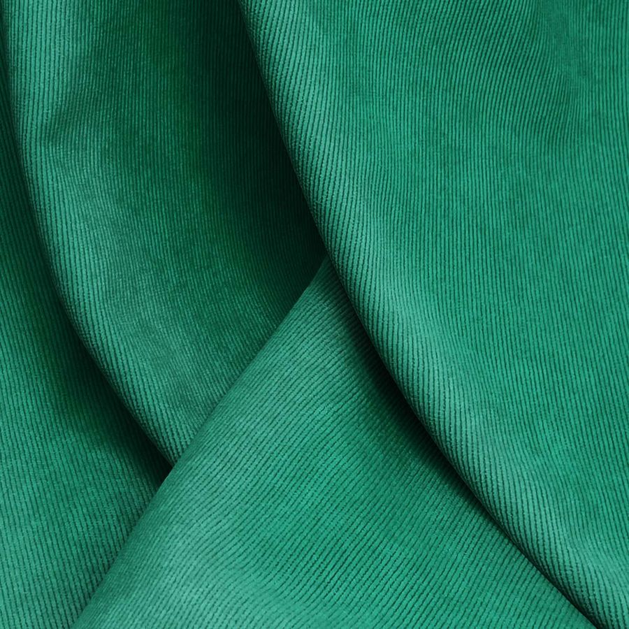 La tela base de este tejido es la Pana Aterciopelada - Dublin, compuesta por un 85% de poliéster, un 12% de poliamida y un 3% de elastano. Su color liso impreso es un verde profundo, que contiene una alta concentración de cian (88) y una menor presencia de magenta (31) y amarillo (74), con un toque sutil de negro (22), lo que da lugar a una tonalidad verdosa excepcionalmente viva y auténtica. Este color secundario combina perfectamente con tonos complementarios como el marrón, el azul y el gris.