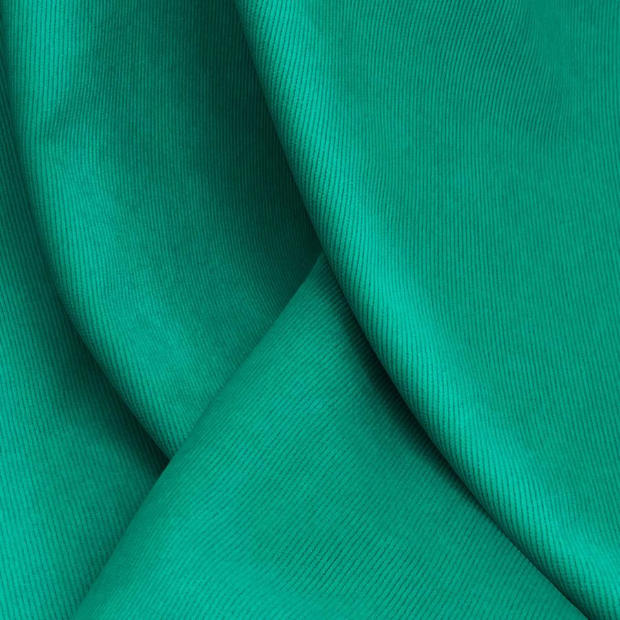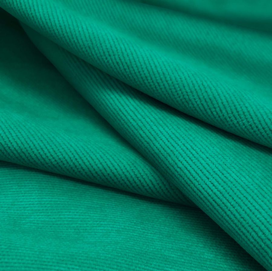 La tela base es la Pana Aterciopelada - Dublin, con un gramaje de 280 gr/m2 y un ancho de 150 cm, compuesta por un 85% de POLIÉSTER, un 12% de POLIAMIDA y un 3% de ELASTANO. El color liso impreso es un Verde Menta oscuro, con un CMYK de 84 23 64 7. Este color transmite una sensación de frescura y tranquilidad, evocando la naturaleza y la frescura de la primavera. Combina especialmente bien con otros tonos verdes, así como con tonos más claros para resaltar su luminosidad.