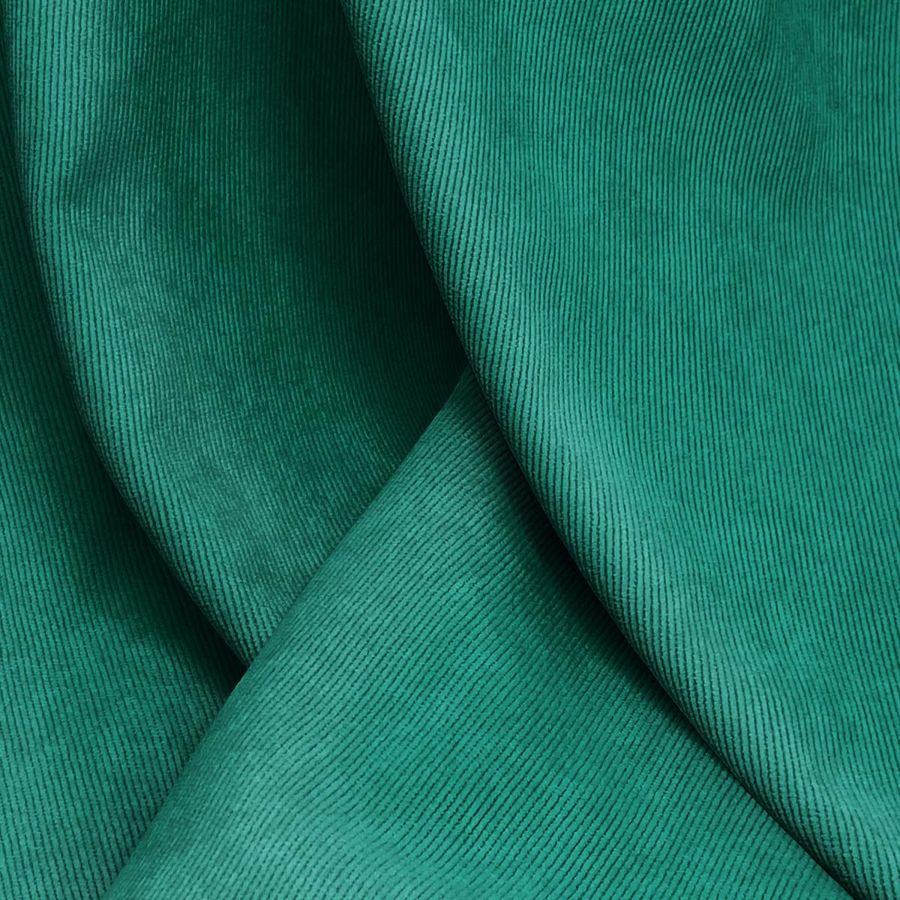 La tela base de este tejido es la Pana Aterciopelada - Dublin, compuesta por 85% poliéster, 12% poliamida y 3% elastano, con un gramaje de 280 gr/m2 y un ancho de 150 cm. El color liso impreso en este tejido es un Verde Mar Profundo, con un CMYK de 89 35 67 29, lo que indica un alto porcentaje de tonos cian y amarillo, con toques de magenta y negro. Este color transmite una sensación de profundidad y frescura, y se combina particularmente bien con tonos beige, marrón y azul claro.