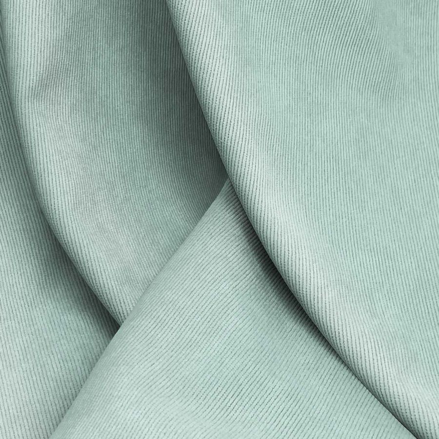 La tela base es la Pana Aterciopelada - Dublin, compuesta de 85% de poliéster, 12% de poliamida y 3% de elastano, con un gramaje de 280 gr/m2 y un ancho de 150 cm. El color liso impreso es un verde-azul vibrante, obtenido a través de la sublimación con una combinación de 40% de tinta cyan, 7% magenta, 29% yellow y 0% black, representado por el CMYK 40 7 29 0. Este color evoca la naturaleza y la serenidad, siendo un tono equilibrado y refrescante. Su combinación con tonos neutros como el blanco, gris o beige, resalta su energía, mientras que con tonos análogos, como el azul o verde, se crea una armonía visual.