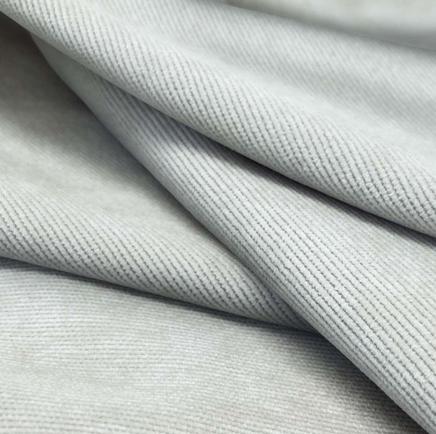 La tela base es la Pana Aterciopelada - Dublin, compuesta por 85% de poliéster, 12% de poliamida y 3% de elastano con un gramaje de 280 gr/m2 y un ancho de 150 cm. El color liso impreso en esta tela es el Azul Agua, cuyo CMYK es 15 3 8 0. Este color se caracteriza por ser fresco y relajante, emulando el color del agua del mar. Es un color versátil que se combina perfectamente con tonos claros como el blanco y el gris, y con tonos más oscuros como el azul marino y el negro. La tela está impresa con el color liso a una sola cara por impresión digital textil.