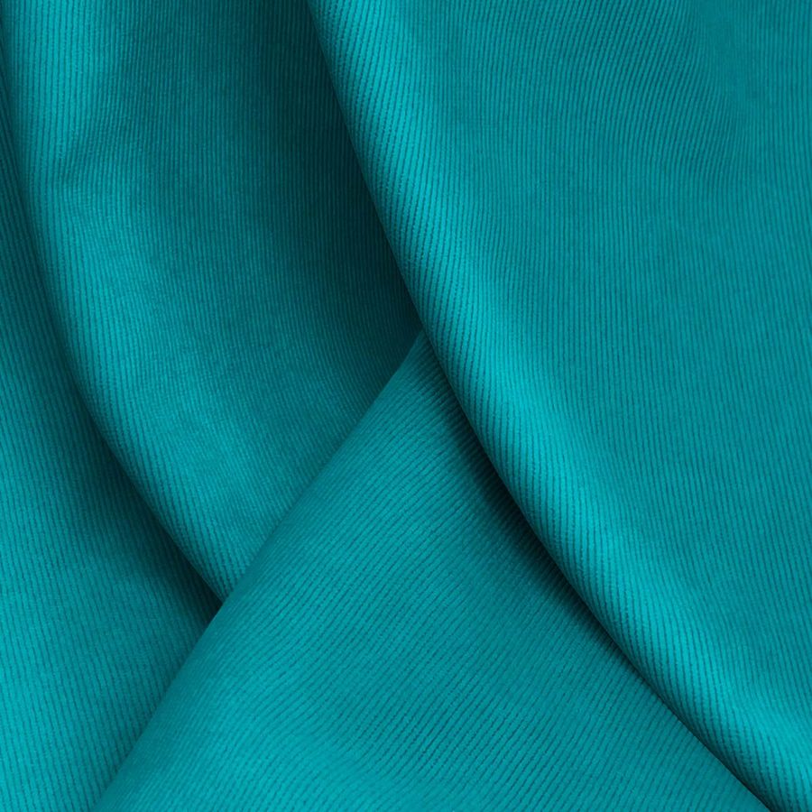 La tela base de este tejido es Pana Aterciopelada - Dublin, compuesto por una mezcla de 85% Poliéster, 12% Poliamida, y 3% Elastano, con un gramaje de 280 gr/m2 y un ancho de 150 cm. El color liso impreso es un vibrante verde-azulado, con valores de tinta Cyan: 85, Magenta: 31, Yellow: 42, Black: 17, y un CMYK de 85 31 42 17. Este color es un tono verde fresco y vivo, que transmite una sensación de naturaleza y tranquilidad.