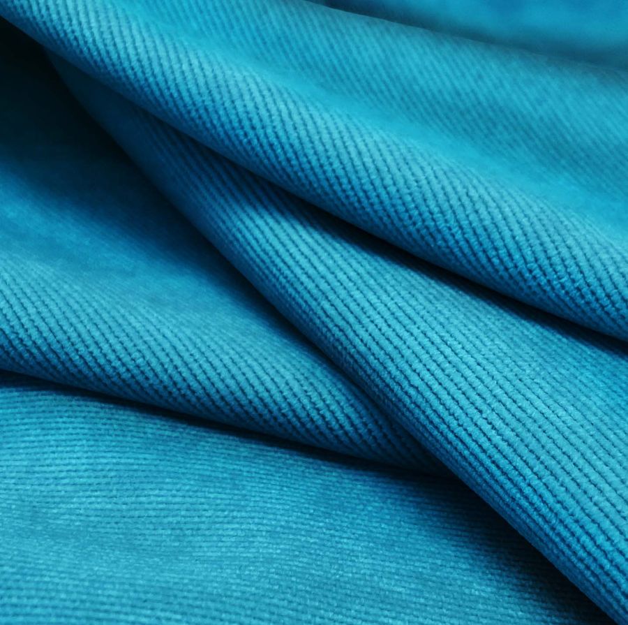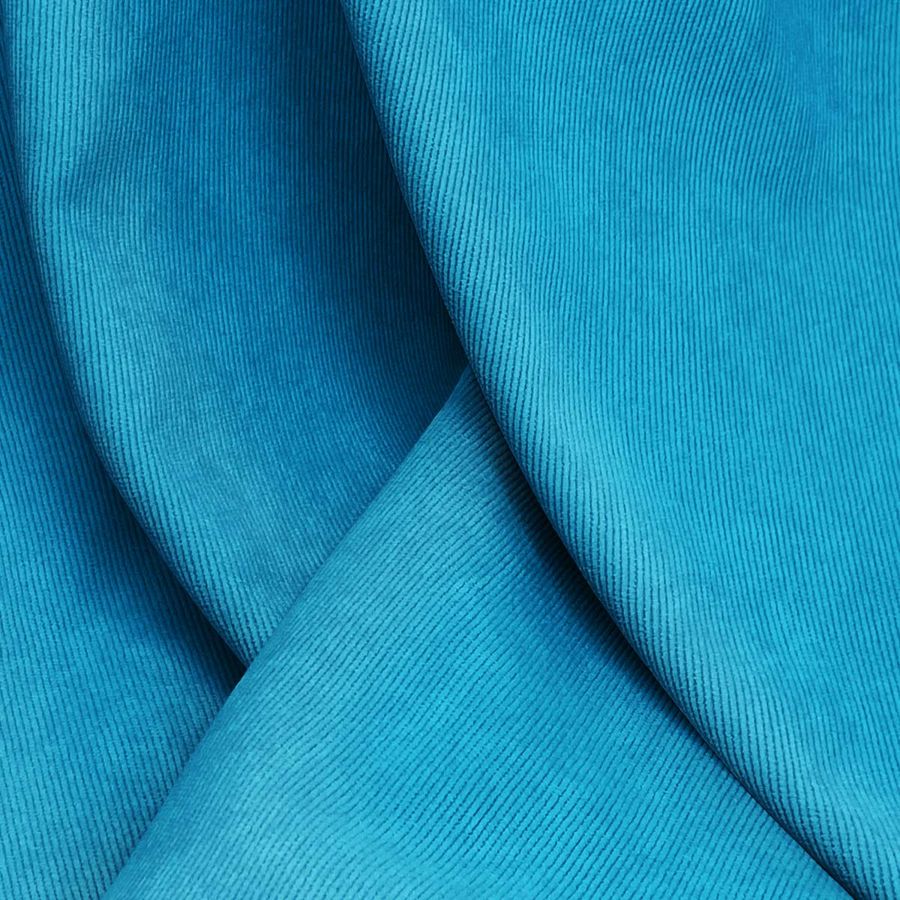 Las características de la tela base y su color liso se complementan entre sí para producir un tejido de gran calidad. La textura suave de la pana aterciopelada, combinada con el brillo sutil del color azul, proporciona un resultado estético y atractivo. Además, la pana es un tejido muy resistente y duradero, apto para todo tipo de aplicaciones y usos.