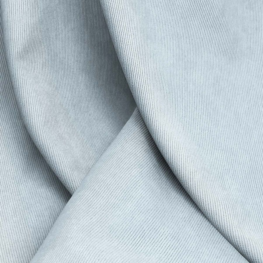 La Pana Aterciopelada - Dublin es una tela de composición 85% poliéster, 12% poliamida y 3% elastano, con un gramaje de 280 gr/m2 y un ancho de 150 cm. El color liso impreso en esta tela es Azul claro con un CMYK de 25 4 6 0. Este color es suave y delicado, evocando la frescura del cielo en un día claro. Combina especialmente bien con tonos tierra, beige y grises suaves.
