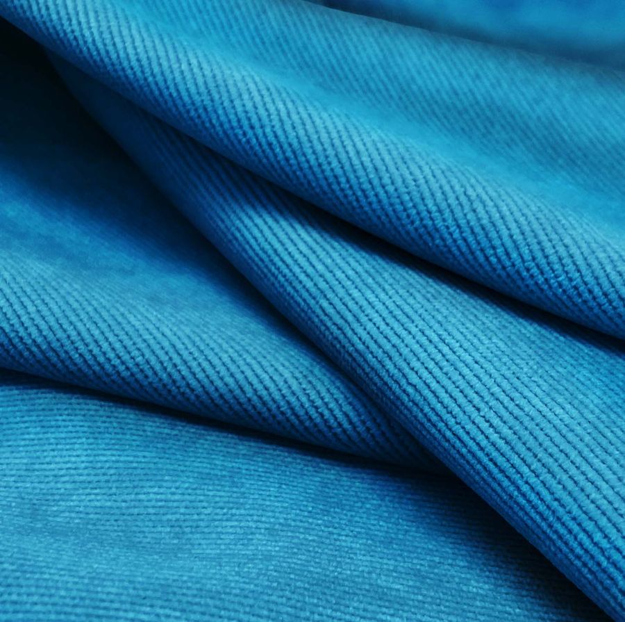La tela base de nuestra descripción es la Pana Aterciopelada – Dublin, compuesta por un 85% de poliéster, un 12% de poliamida y un 3% de elastano, con un gramaje de 280 gr/m2 y un ancho de 150 cm. El color liso impreso es un Azul marino brillante, con un CMYK de 85, 44, 5, 0. Este color representa la elegancia, la sofisticación y transmite una sensación de autoridad. Además, combina a la perfección con una amplia variedad de otros colores, como el blanco, el gris, el beige y el dorado.