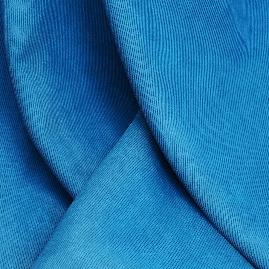La tela base es Pana Aterciopelada - Dublin, compuesta en un 85% de poliéster, un 12% de poliamida y un 3% de elastano, con un gramaje de 280 gr/m2 y un ancho de 150 cm. El color liso impreso es Azul marino brillante con un CMYK de 88 51 2 0. Este color es una mezcla intensa de azules que confiere profundidad y elegancia, y combina especialmente bien con grises, beiges y tonos tierra.