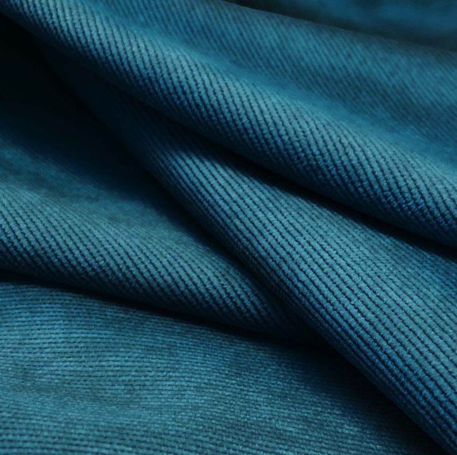 La tela base, Pana Aterciopelada - Dublin, tiene una composición de 85% poliéster, 12% poliamida y 3% elastano, con 280 gr/m2 y un ancho de 150 cm. El color liso impreso es un profundo azul marino con un CMYK de 98 66 40 32. Este color evoca elegancia y profundidad, combinando bien con otros tonos oscuros y también con tonos más claros como los grises.