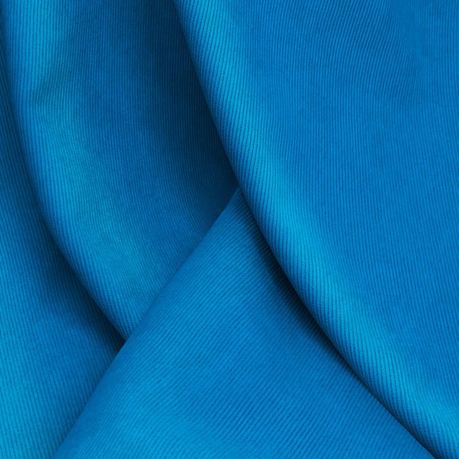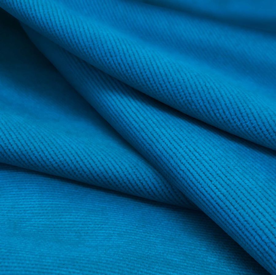 La tela base es la Pana Aterciopelada - Dublin, compuesta por un 85% de poliéster, un 12% de poliamida y un 3% de elastano, con un gramaje de 280 gr/m2 y un ancho de 150 cm. En cuanto a su color liso impreso, se trata de un azul intenso con un contenido del 89% de tinta cyan, 53% de magenta, 3% de amarillo y 0 de negro, con un valor CMYK de 89 53 3 0. Este color es resplandeciente y profundo, perfecto para dar una sensación de sofisticación y elegancia a cualquier tipo de prenda o decoración. Combina particularmente bien con tonos neutros como el blanco, beige y gris, pero también resulta versátil para acompañar otros colores llamativos como el rojo, el naranja o el amarillo.