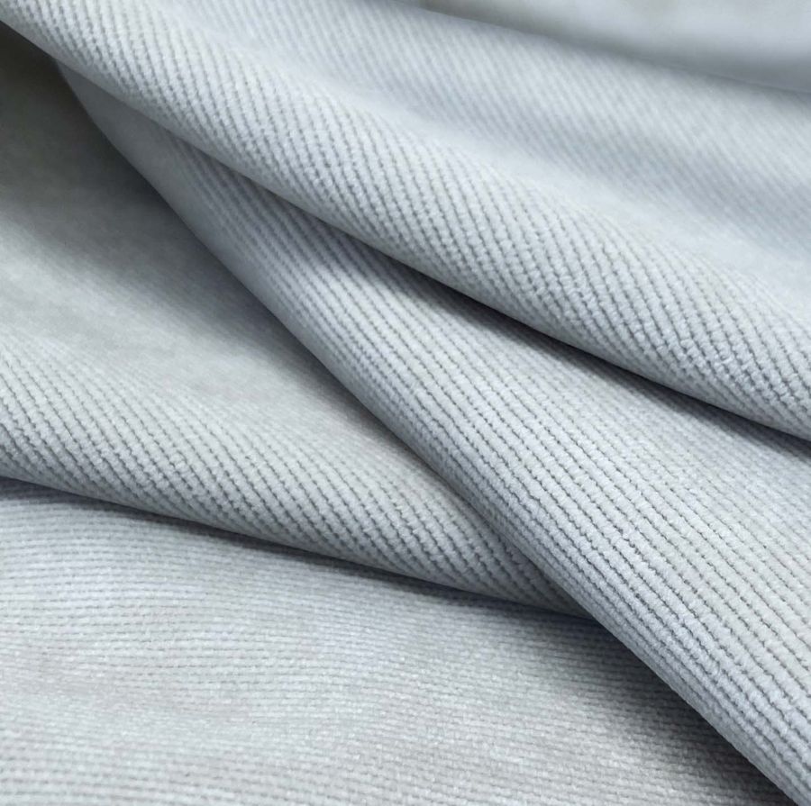 La tela base de este tejido es la Pana Aterciopelada - Dublin, compuesta por 85% de poliéster, 12% de poliamida y 3% de elastano, con un gramaje de 280 gr/m2 y un ancho de 150 cm. El color liso impreso tiene un CMYK de 23 7 2 0, lo que le da un tono azul violeta claro. Este color se combina en particular con tonos neutros y puede aportar un toque de elegancia y sofisticación a cualquier ambiente.