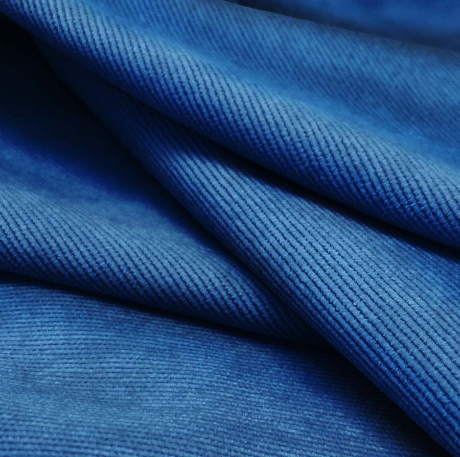 La Pana Aterciopelada - Dublin es una tela compuesta por 85% poliéster, 12% poliamida y 3% elastano, con un gramaje de 280 gr/m2 y un ancho de 150 cm. Este tejido presenta una textura suave tanto al tacto como en su apariencia visual, y su color liso impreso es un azul arándano cuyo CMYK es de 100 77 13 2. Este color simboliza la tranquilidad, el equilibrio emocional y la unión entre mente y cuerpo, además de aportar un toque de elegancia y sofisticación. Combinado con otros colores como el blanco, negro, gris o beige, crea conjuntos armónicos y elegantes.