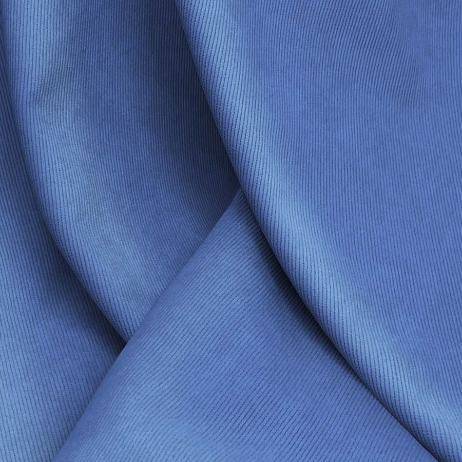 La tela base es la Pana Aterciopelada - Dublin, compuesta por 85% de poliéster, 12% de poliamida y 3% de elastano, con un gramaje de 280 gr/m2 y un ancho de 150 cm. El color liso impreso es Azul celeste, con una proporción de tinta Cyan de 77, Magenta de 58, Yellow de 7 y Black de 0, representando el CMYK 77 58 7 0. Este color ofrece un tono suave, relajante y fresco, asociado a la tranquilidad y calma del mar.