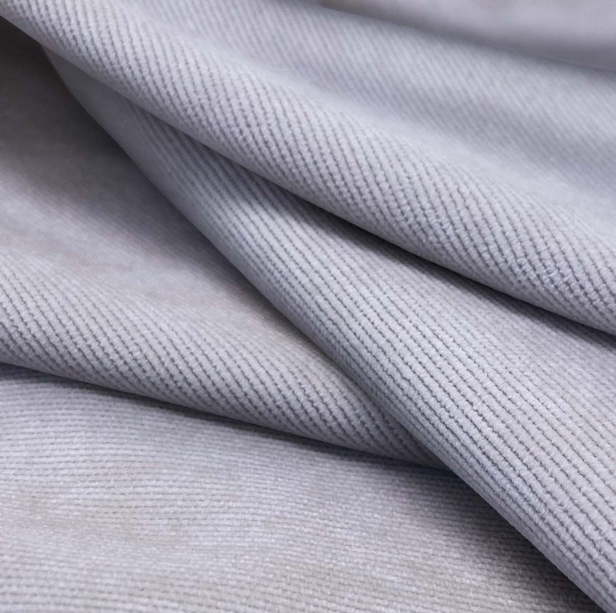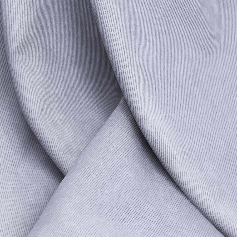 La tela base es la Pana Aterciopelada - Dublin, compuesta por un 85% de poliéster, 12% de poliamida y 3% de elastano. Su gramaje es de 280 gr/m2 y su ancho alcanza los 150 cm. El color liso de esta tela es un Morado Lila Pálido, cuyo CMYK es 31 26 4 0. Este color es una mezcla entre el rojo y el azul, lo que transmite una sensación de frescura y serenidad. Combina de manera particular con tonos beige, grises y verdes. Es importante destacar que la tela está impresa con el color liso a una sola cara por impresión digital textil, lo que significa que no es un tejido tintado sino impreso.