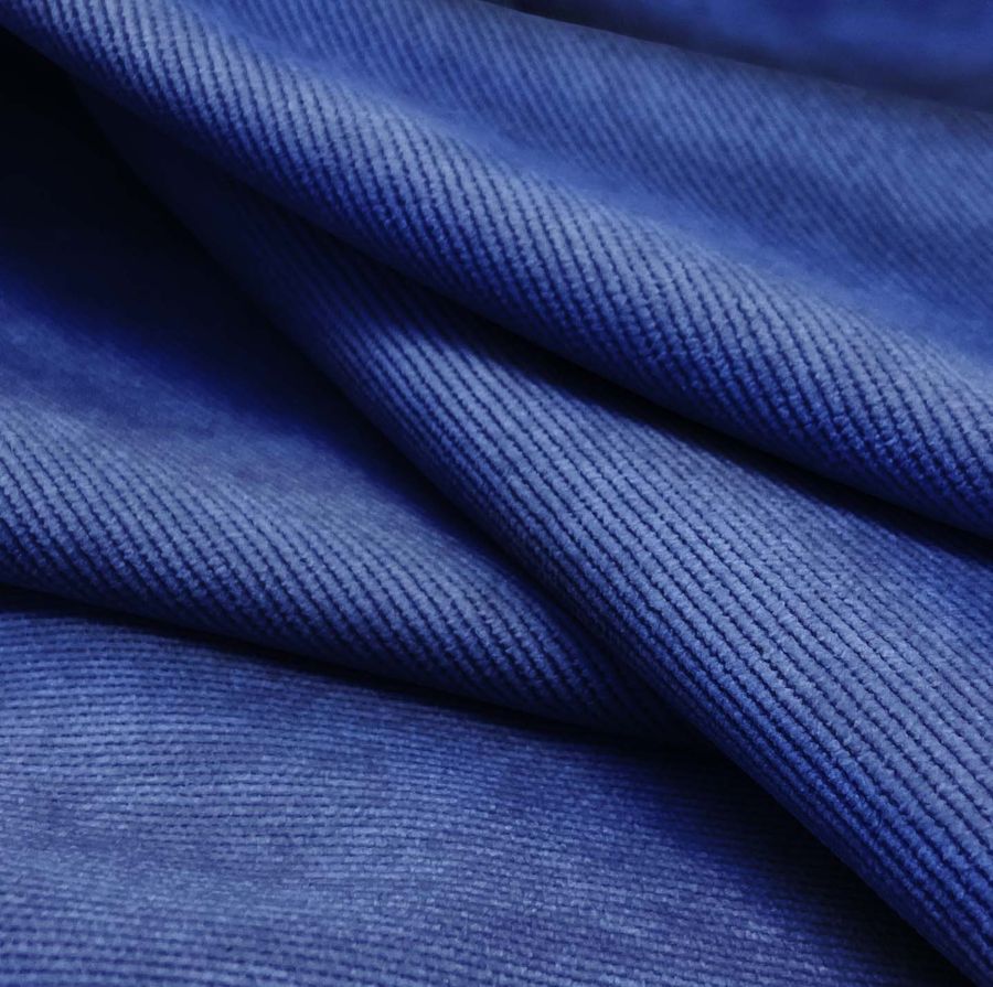 La tela base es la Pana Aterciopelada - Dublin, con una composición de 85% poliéster, 12% poliamida y 3% elastano, un gramaje de 280 gr/m2 y un ancho de 150 cm. El color liso impreso es Azul / Azul marino, con un contenido de tinta Cyan del 100, Magenta del 87, Yellow del 12 y Black del 1, lo que resulta en un CMYK de 100 87 12 1. Este color se caracteriza por su intensidad y profundidad, con una tonalidad vibrante y sofisticada. Combina muy bien con tonos claros como el beige y el blanco, así como con tonos plata y oro para un efecto más glamuroso.