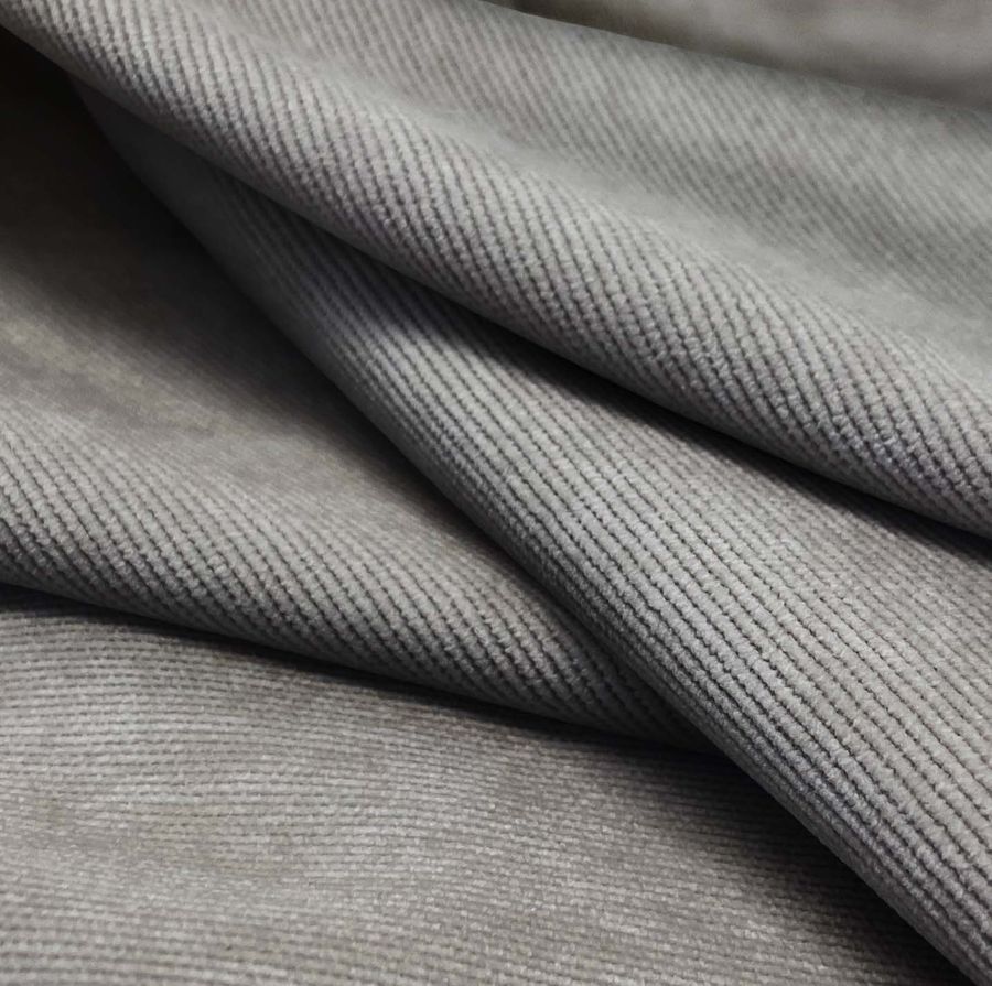La tela base de este tejido es la Pana Aterciopelada - Dublin. Su color liso impreso es el gris acorazado y sus componentes de tinta CMYK son 51 42 38 20. Este color es un gris oscuro con una tonalidad fría y metálica que se asemeja al color del acero. Junto con otras tonalidades grises del mismo grupo, como el negro o el blanco, el gris acorazado combina perfectamente con otros colores fríos como el azul, verde y morado. Por otro lado, la tela se imprime a una sola cara mediante la tecnología de impresión digital textil.