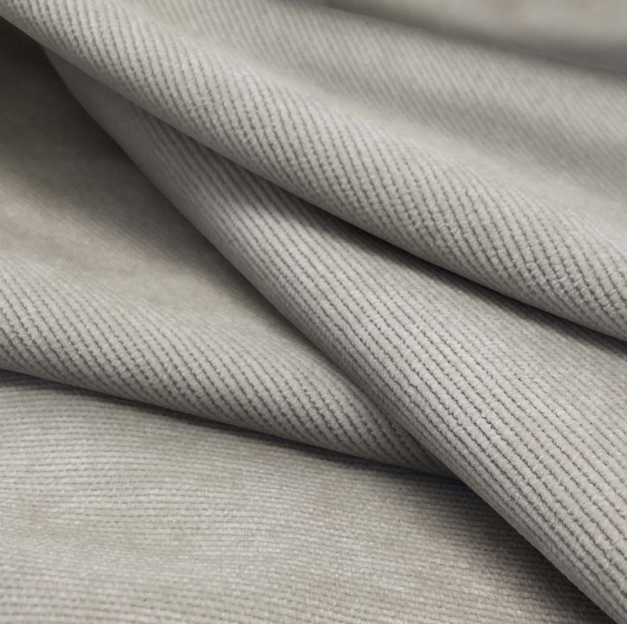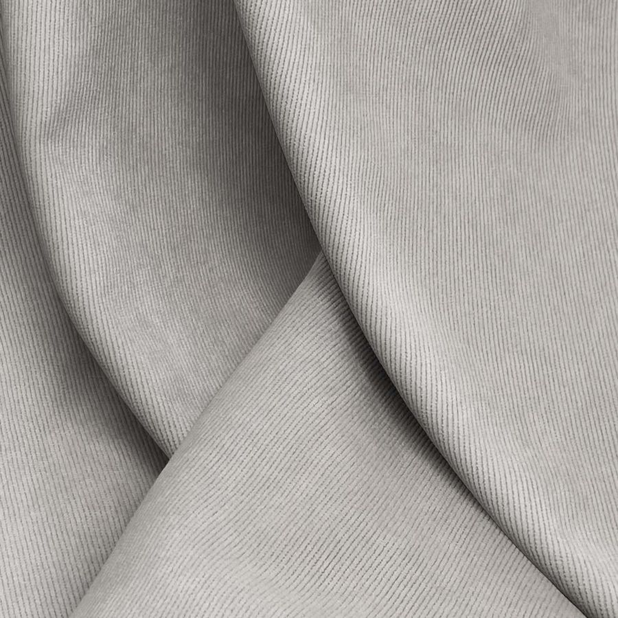 La tela base es la Pana Aterciopelada - Dublin, compuesta principalmente por poliéster, poliamida y elastano, con un gramaje de 280 gr/m2 y una anchura de 150 cm. El color liso impreso es una combinación de gris y verde salvia, con un CMYK de 33 27 31 7. Este color secundario se caracteriza por tener un tono suave y equilibrado, que se asocia con la naturaleza y la tranquilidad. Combina bien con tonos como el blanco, el beige y el marrón claro, creando ambientes serenos y relajantes.