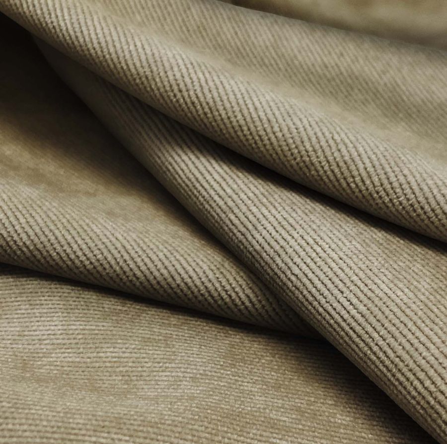 La tela base Pana Aterciopelada - Dublin, compuesta por 85% poliéster, 12% poliamida y 3% elastano, tiene un gramaje de 280 gr/m2 y un ancho de 150 cm. Su color liso impreso es una combinación de gris y marrón ejército con un CMYK de 44 40 55 27, que transmite una sensación de elegancia y robustez. Este color secundario combina especialmente bien con tonos crudos, azules oscuros y verdes tierra. Cabe destacar que la tela está impresa con el color liso a una sola cara por impresión digital textil.
